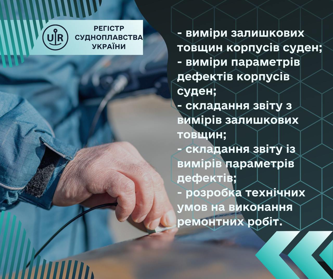 • виміри параметрів дефектів корпусів суден;