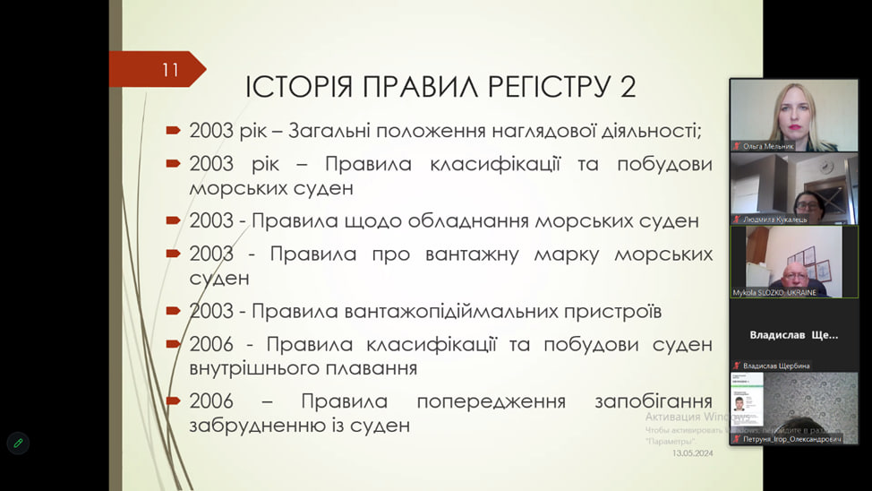 ✨Особливу увагу було приділено правилам, що створені національним класифікаційним товариством Регістр судноплавства України, зокрема процесу їх розробки, підтримання в актуалізованому стані, врахуванню вимог міжнародних інструментів ІМО, МАКТ і застосуванню в роботі Регістру.