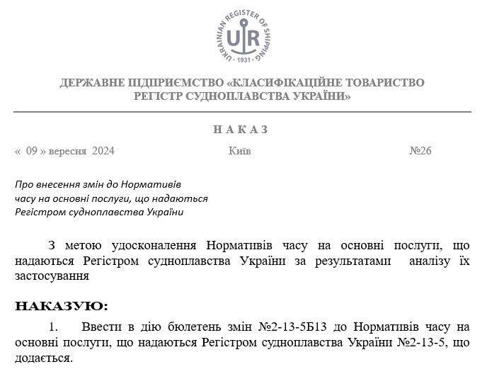 Бюлетенем  2-13-5-Б13 внесені зміни до нормативів часу на  технічний нагляд за побудовою малих суден, технічний нагляд за термоізольованими контейнерами, черговий огляд суховантажних контейнерів і контейнерів для навалочних вантажів без тиску у відповідності з Міжнародною конвенцією з безпечних контейнерів, огляд ізотермічних контейнерів у відповідності з Міжнародною конвенцією по безпечним контейнерам без випробувань установки.